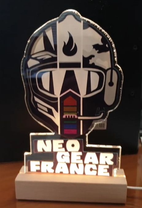 Trophée plexiglass personnalisé de 15×21 cm selon ta forme sur socle lumineux. Personnalisation en ligne à venir….